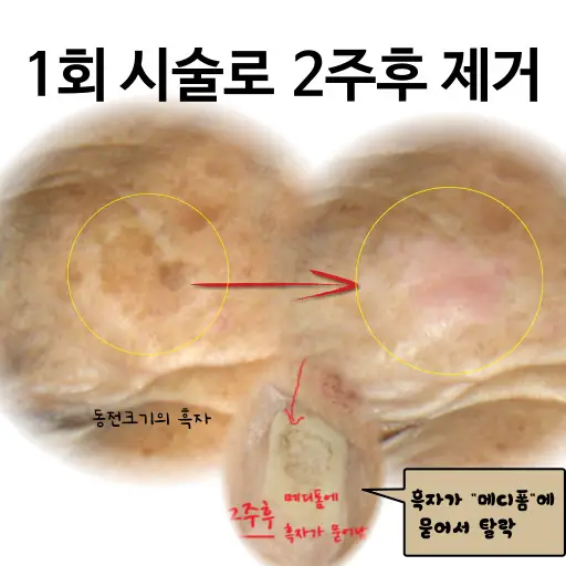 시술 후 딱지 형태로 탈락되며 수일 내 눈에 띄게 밝아짐